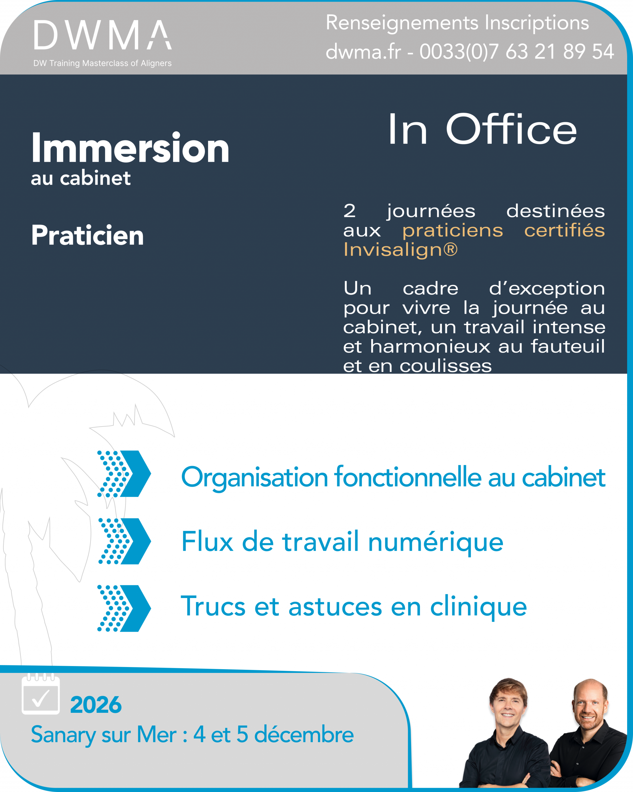 Docteur David Couchat et Docteur Waddah Sabouni – Orthodontistes exclusifs, conférenciers et formateurs à l’international, ayant intégré les aligneurs à leur pratique depuis 2001